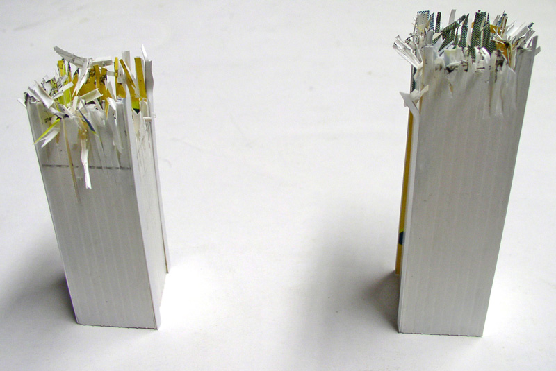 The twin towers that will serve as the model's base are made from plastic card and Evergreen rods...