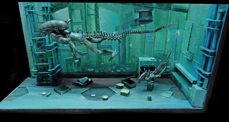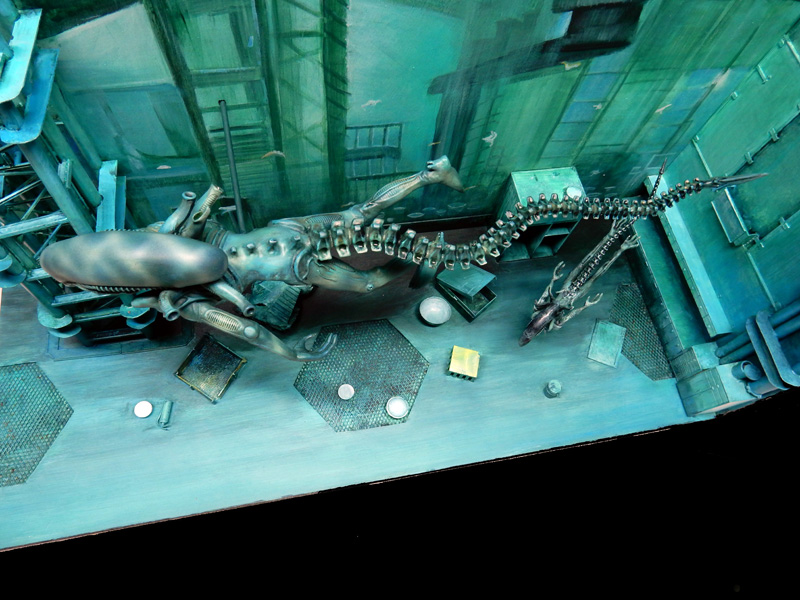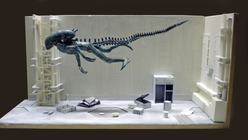 Un Alien à une échelle plus petite est ajouté pour créer de la profondeur à la scénette...