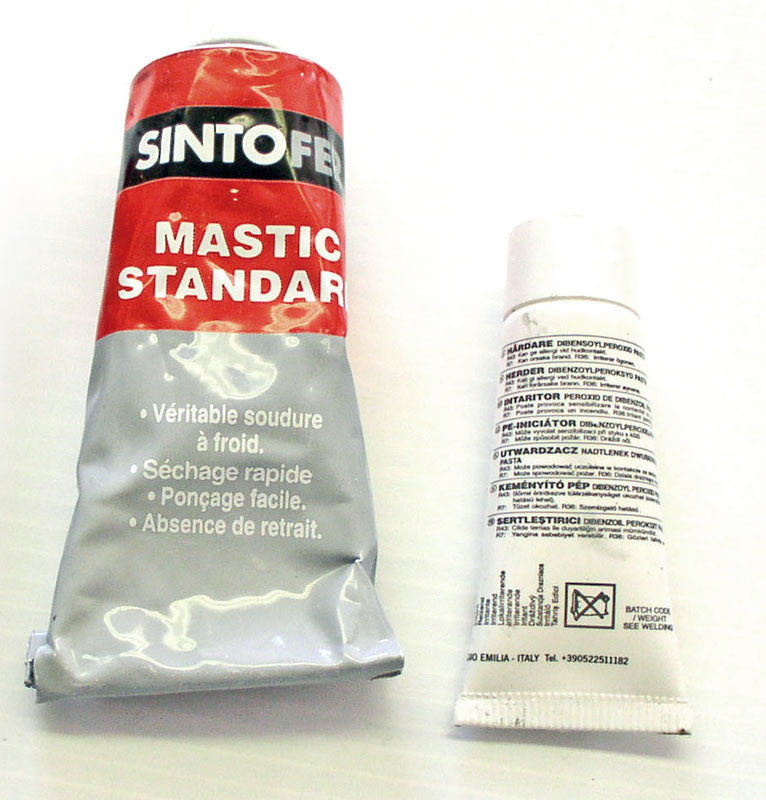 Degrease the areas to be filled with Acetone, and if necessary, scratch any excessively flat surfaces to ensure a good bond. Prepare your Sintofer with its hardener and apply...