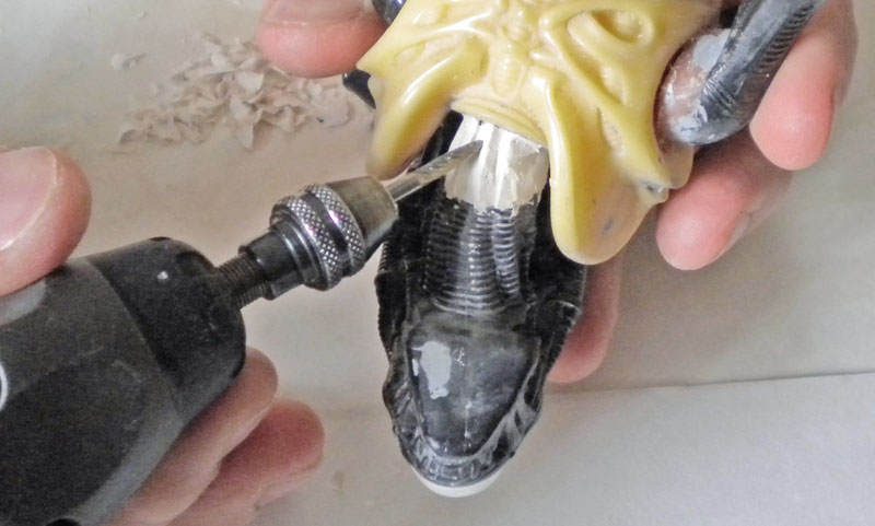 L'Alien est fixé dans le décor à l'aide d'une tige métal...