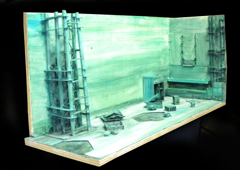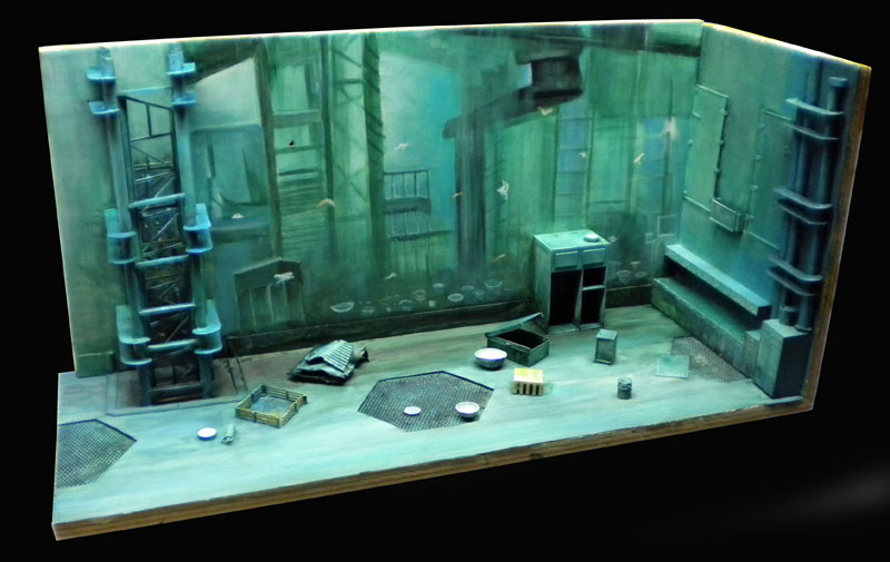 Le décor est reconstitué en s'inspirant de photos du film et de quelques accessoires de la boîte à surplus...