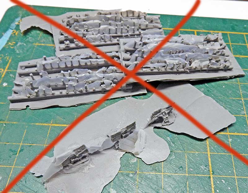 The upper side wings - far too thick - will be rebuilt in plastic card. The originals will be scrapped...