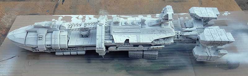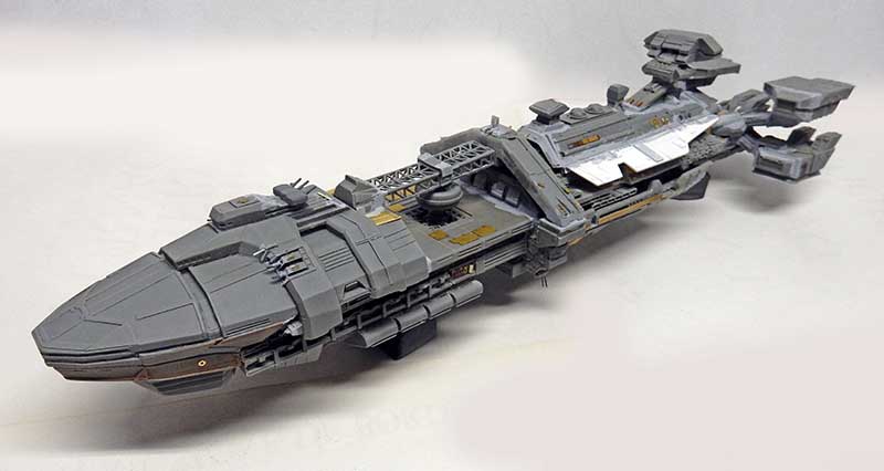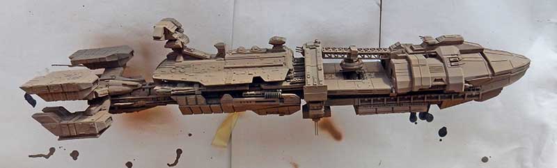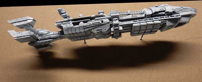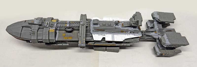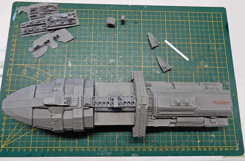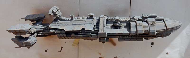 Trois tourelles de croiseur à l'échelle sont ajoutées sur le dôme principal. Les autres canons sont tous refaits en plastique étiré...
