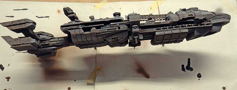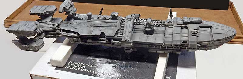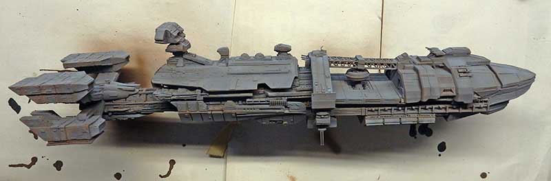 Three scale cruiser turrets are added to the main dome. The other guns are all rebuilt in stretched plastic...