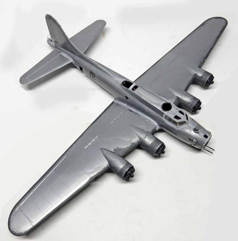 The base is sprayed with a neutral gray over the whole kit, after sealing the various openings and applying maskol to the glass parts...