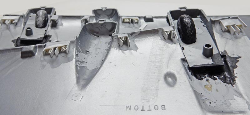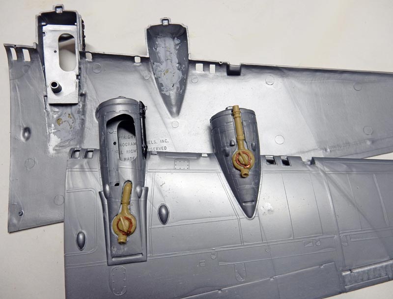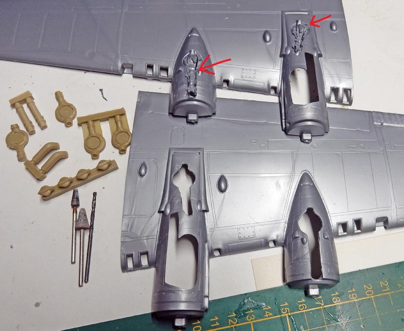 First thing: cut out the old exhaust pipes from the engine housings and insert the more precise resin ones...