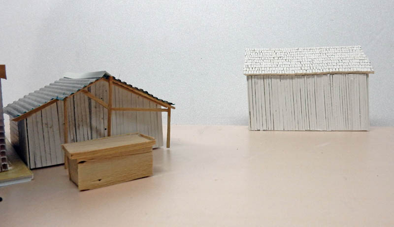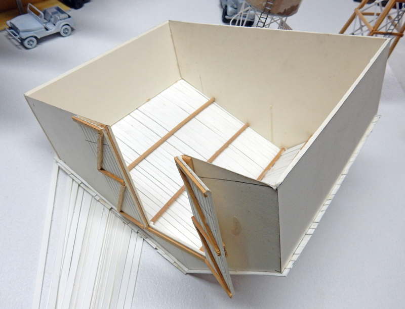 Le garage de la dépanneuse. Carton à dessin et balsa...