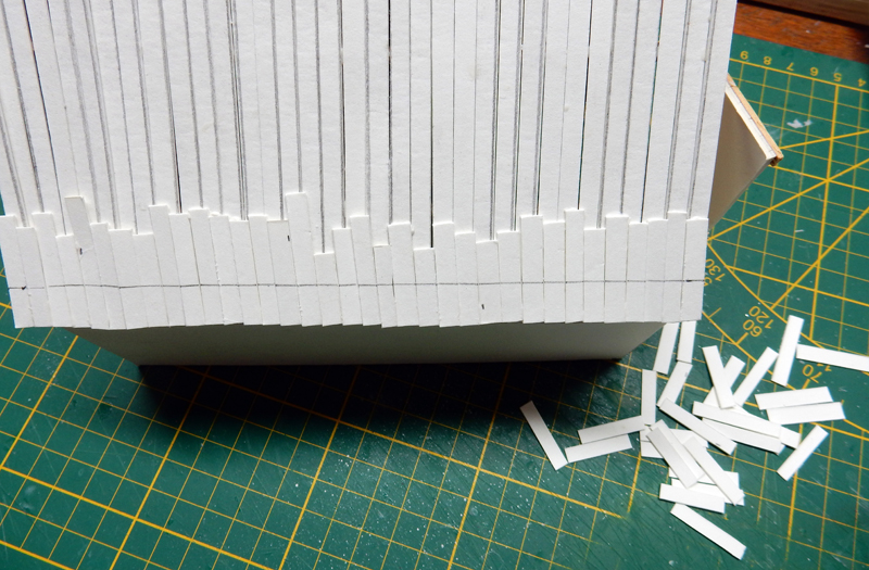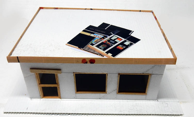 The building is made of cardboard and balsa wood, based on the author's comic strip drawings...