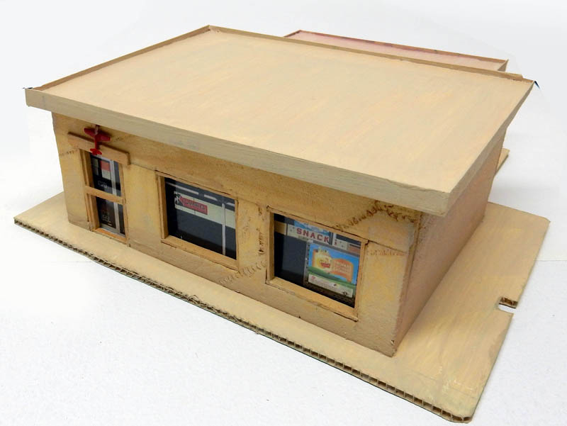 Ici, le but est de se rapprocher des impressions et couleur de l'auteur, et pas de plonger dans la réalité pure. On va garder un beige fatigué pour ce modèle posé au-dessus de la station-service depuis des années.