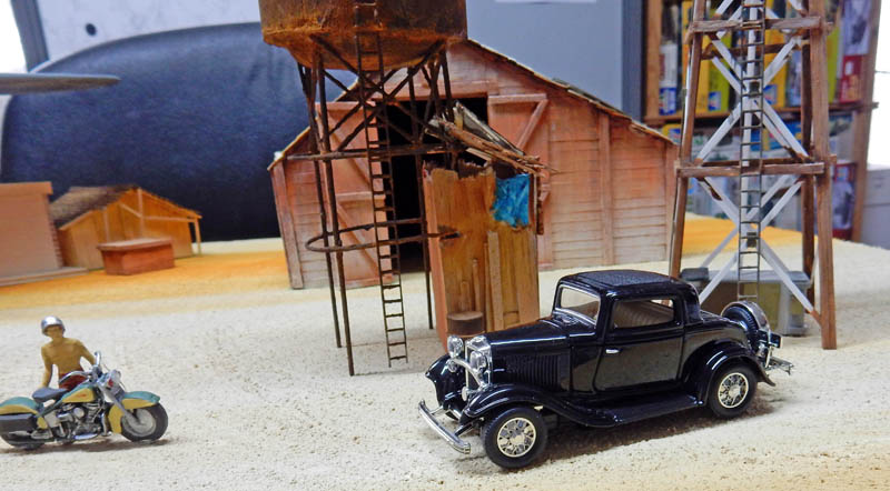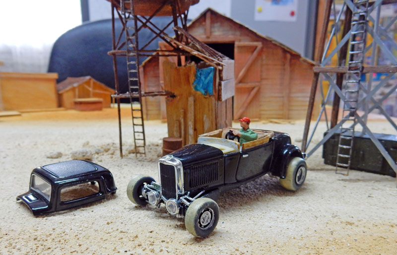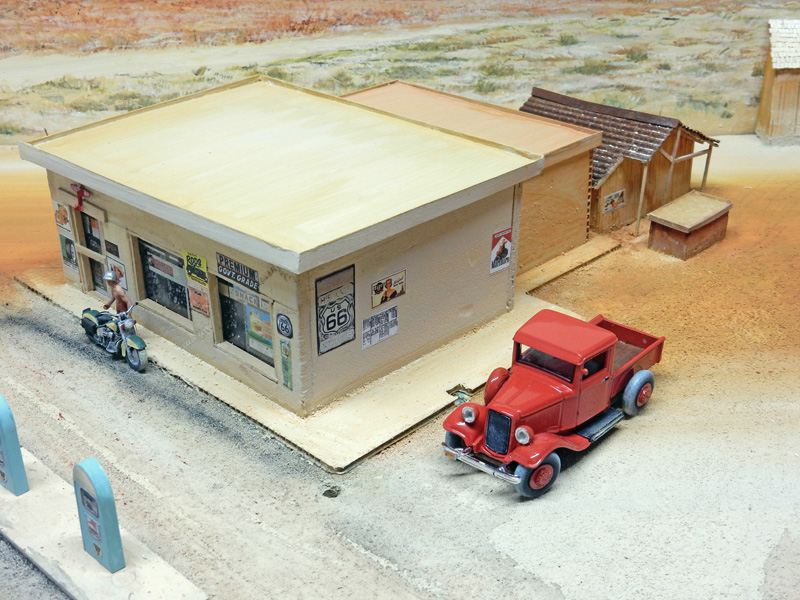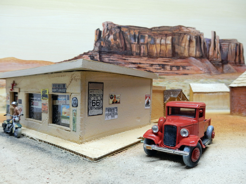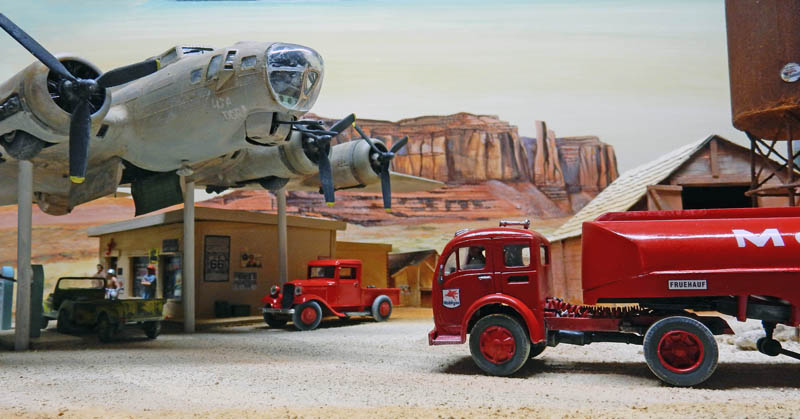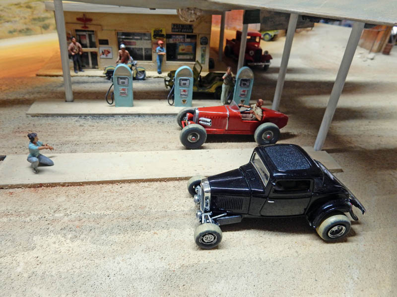 Streamliner - une bd en deux tomes du dessinateur et scénariste Fane qui narre les aventures d'une jeune fille et son père ancien aviateur de la seconde guerre mondiale qui a acheté une station-service en plein désert d'Arizona et qui va être le lieu de rencontres de courses de rods américains et de motos au prix de quelques conflits... Ceci promettait la création d'un diorama qui sortait de l'ordinaire...