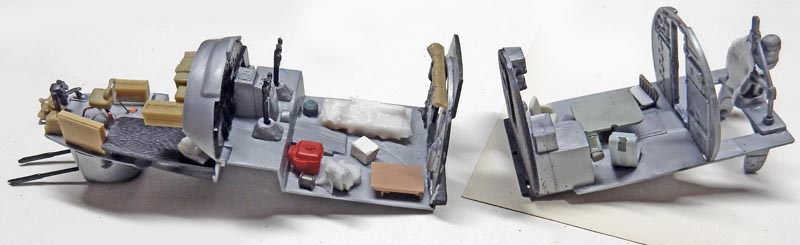 Passons à l'aménagement intérieur. Dans la bd, l'avion sert d'appartement pour la fille et son père. Donc fi des sièges et divers accessoires. Seuls sont installés le tableau de bord et les pièces frontales. Les deux mitrailleuses 12,7mm à l'avant sont gardées. Une couchette et quelques meubles viennent compléter l'ensemble...