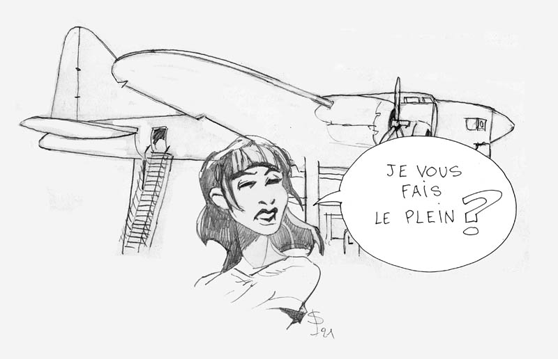 The B17: the comic-book hero - Lisa Dora, who landed in the desert on his return from a mission, and whose father, who was one of the crew, salvaged it and erected it above his service station...