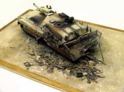 The 1/35th scale model is assembled from ESCI & TAMIYA kits. Numerous modifications have been made to get as close as possible to the tank wreckage. See Patrick Lebecq's excellent article in MODEL n°4...
