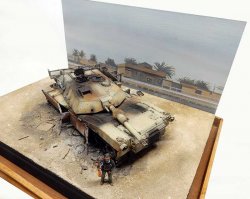 There are several versions about the end of this tank. What is certain is that it caught fire after the turbine overheated. The crew were shot trying to extinguish the fire with fire extinguishers. An anti-tank missile then hit the tank. During an attempt by the Americans to tow it back, a 106 recoilless cannon shot immobilized it for good. Leaving the machine in place, the American forces sent two missiles and a bomb to destroy it completely - very shortly after the photographer's departure !