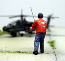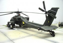 The 1:48 scale model is from Monogram, completed by a Verlinden resin and photoetched kit. Nevertheless, some details have been added to the model. The "little" Apache is an Italeri kit in 1/100th scale...