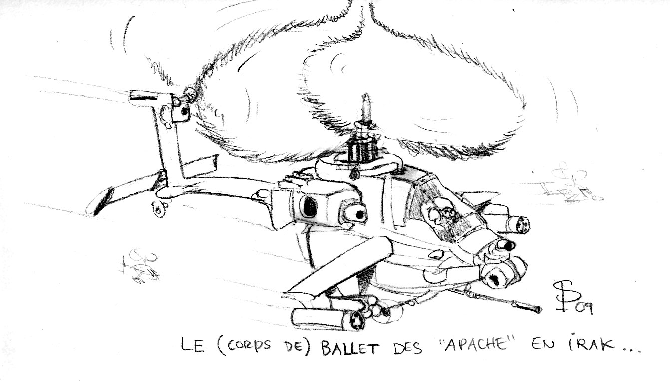 Le AH-64 Apache - hélicoptère d'attaque américain - voit le jour en 1976 et sera modernisé en 1992. Il fera son baptême du feu lors de la guerre du Golfe où il montrera ses grandes qualités. Il dispose d'un canon M230 Chain Gun de 30mm. Il peut porter un grand choix de missiles en complément de ses lance-roquettes sous ses ailes, mené par deux turbines d'une poussée totale de 3 780cv. L'habitacle est blindé. Il peut voler par tous les temps de jour comme de nuit...