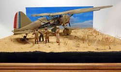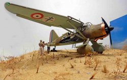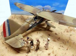 Diorama: Lieutenant Finance and Sergeant Leroy's P9197, summarily repaired on March 8 in Zouar. The fuselage panels had been left with the Italians the day before...