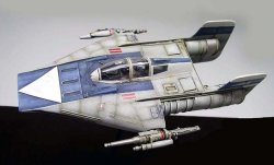 The "A-Wing" from MPC. The second blue aircraft is a model of the first, based on the preparatory drawings for the movie...