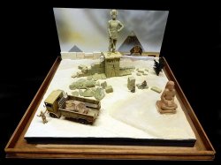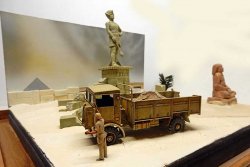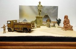 Diorama à l'échelle 1/48ème. Le pharaon est une résine VERLINDEN 120mm. La statue au sol un Mako-moulage pour enfant. Le camion - l'Austin K5 - est un kit de la marque "BANDAÏ"...