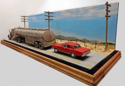 L’échelle est le 1/32ème. La voiture – une Plymouth Valiant de 1970 - est une résine 3D.