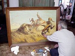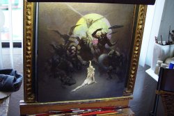 Frank Frazetta passe effectivement pour un artiste fantastique et de sci-fi et pour un artiste culte. Il était déçu qu’on le confine seulement sur ces sujets alors qu’il a fait de tout… Western, nus, portraits, fantaisie, comics. Il a utilisé pour environ 5% dans son travail quelques photographies et frottis mais tout le reste vient directement de son imagination, du trésor de sa mémoire et de la magie qui le définit comme une force créatrice. Son approche est intuitive, créatrice dans l’essence d’une scène, et une approche rapide sur papier ou chevalet. Il a tout simplement un don spécial que n'ont pas la plupart des artistes qui utilisent des références ou se reposent sur des modèles…