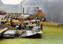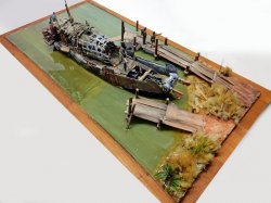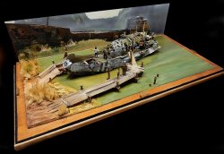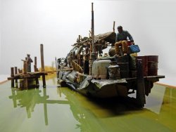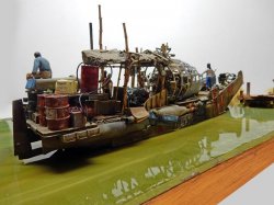"Skull Island" - an adventure movie in which King Kong returns to confront dinosaurs.The "boat" - raft - of the protagonists is interesting to reproduce in model form, as it is made in the film from aircraft parts. The model here is in 1/35th scale...