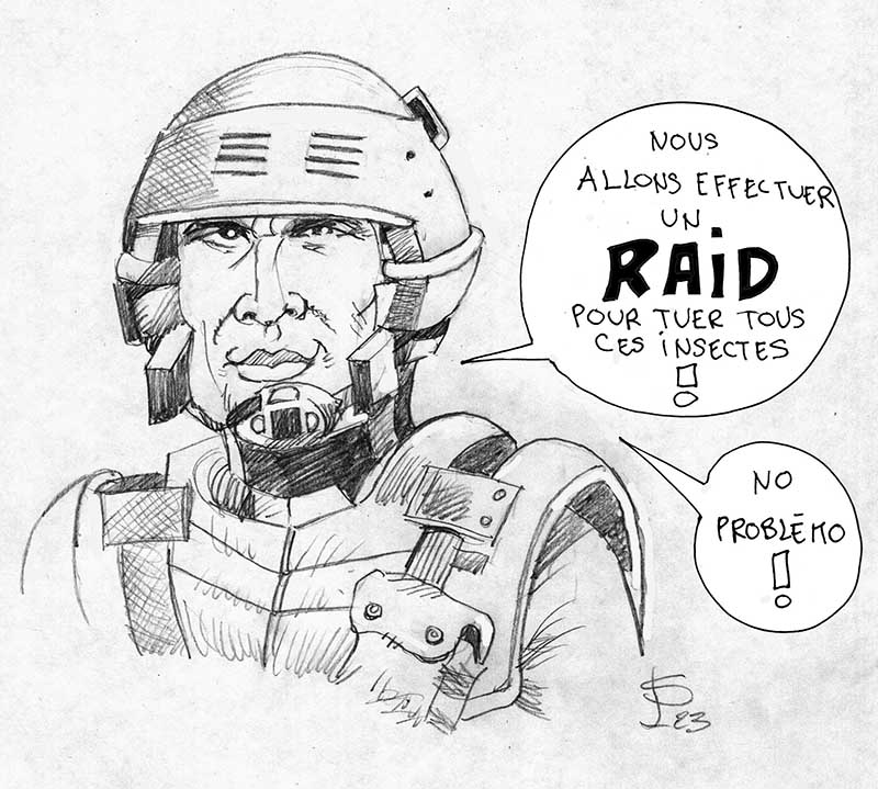 "We're going to carry out a RAID* to kill all these bugs !" - *(Insecticide brand).