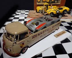 Alors oui... Les maquettes automobiles et les dioramas remplissent mes vitrines et les figurines et les décors viennent compléter les maquettes que vous avez sous les yeux... Mes périodes de prédilection sont les années 1950 à 1980 principalement les sportives européennes ainsi que les COBRA et les SHELBY.