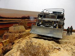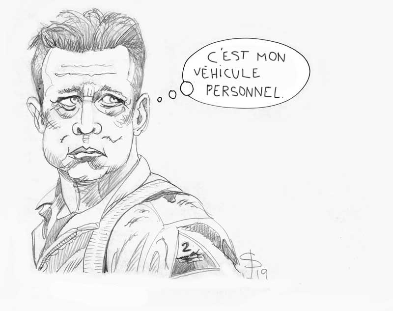 Ils émergèrent dans la chaleur, la fumée et la poussière, sortis de nulle part. L'équipage du transporteur - immobilisé tel un vaisseau englué dans les sables - les contempla médusé... D'où sortaient-ils ?