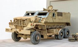 In 2003, during the invasion of Iraq, it was transformed into a "Guntruck" - an armored truck - to protect it from "R.P.G." and "snipers". The sides and doors are reinforced with welded iron plates. The latest models feature a fully armored cab and protection for the gunner. The body layout is also modified, and versions vary from one vehicle to another. As with the "Hummer", and like the vehicles used in Vietnam, the situation prompted modifications to ensure effective protection throughout the conflict...