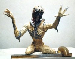 Resin figurine, 1/6th scale. The translucent skull was molded in resin to fit over the added plastic skull. The model is set in a TV, with a backdrop added behind...