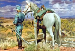 Major Dundee. 90mm AMATI lead figurine. The horse is from VERLINDEN, and the equipment is made from two-component putty. The rock is sculpted with modeling plaster...