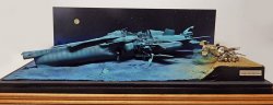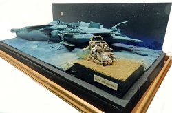 The inspiration for this diorama comes from a 1950s novel by Chad Oliver - "The Winds of Time" - which recounts the crash on Earth of a ship from an advanced civilization in search of inhabited worlds, but it arrives in prehistoric times and the crew decide to hibernate so they can repair it and set off again in the future when Earth has achieved space travel...