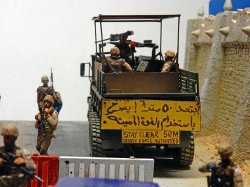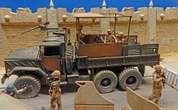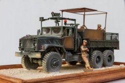 In 2003, during the invasion of Iraq, it was transformed into a "Guntruck" - an armored truck - to protect it from "R.P.G." and "snipers". The sides and doors are reinforced with welded iron plates. The latest models feature a fully armored cab and protection for the gunner. The body layout is also modified, and versions vary from one vehicle to another. As with the "Hummer", and like the vehicles used in Vietnam, the situation prompted modifications to ensure effective protection throughout the conflict...