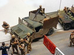 En 2003, lors de l'invasion de l'Irak, il va se transformer en "Guntruck" - camion blindé - afin de se protéger des tirs de"R.P.G." et des "snipers" (tireurs embusqués). Les côtés et portières seront renforcés par des plaques de fer soudées et fixées. Les derniers modèles bénéficient d'une cabine entièrement blindée et d'une protection pour le mitrailleur. L'aménagement de la caisse sera lui aussi modifié et les versions varient d'un véhicule à l'autre. Tout comme les "Hummer", et à l'instar des véhicules du Vietnam, la mise en situation provoquant des modifications pour se protéger efficacement tout au long du conflit...
