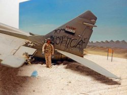 La maquette Academy à l'échelle 1/48ème a été retravaillée en fonction des photos de la machine réelle. Des plaques ont été ouvertes et de nombreux détails rajoutés. Les gouvernes des ailes ont toutes été modifiées. Le cockpit réaménagé, la verrière découpée pour obtenir les cassures dues aux armes des soldats qui semblent s'être entraînés dessus...