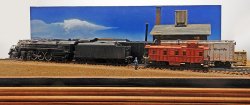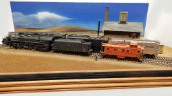 During tests in April 1943, the 4016 developed 8,000hp on the hook. The maximum speed of 128 km/h was also considerable for such locomotives (cruising speed was 50 km/h), and they were capable of routinely pulling 4,300-ton trains in the Rockies. They consumed 80 m³ of water and 11.4 t of coal per 100 km, and were therefore coupled to 7-axle centipede tenders. Total weight in service - locomotive & tender - was 541 tons. The machine measured 26 meters and 40.50 meters with the tender. The last Big Boy ran on July 21, 1959.