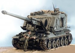 The best self-propelled gun of its time! The first prototype came out in 1972, managed by an innovative automation system based on on-board electronics. At the time, the semi-automatic loading system enabled a "normal" rate of fire of 6 shots in 2 minutes.