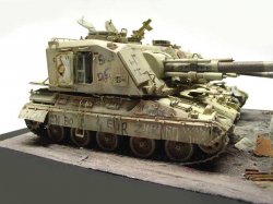 Ce véhicule intéressant bien que peu aérodynamique – mais n’oublions pas que c’est une pièce d’artillerie et non un char d’assaut – méritait d’être mis en valeur. De plus, les maquettes de blindés français ne sont pas légions… A quand un AMX10 ou un ACMAT en grappe plastique et non en résine hors de prix ???
