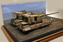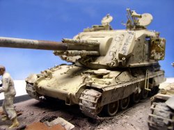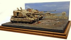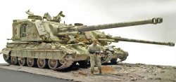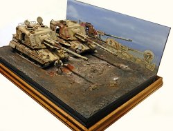 The following diorama was inspired by photos of equipment abandoned by the dozens in Iraq in 2003 on a vast plot of land... whose surfaces the G.I.s had fun "tagging"... Incidentally, I don't know the place or town where these pieces are stored, so if anyone has any information...